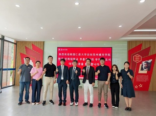 2025年6月26日,韩国仁荷大学副校长金雄熙一行八人到访我校,成功举办了中外合作办学项目交流会及协议交换仪式,标志着两校在国际化办学合作方面迈出实质性步伐。本次活动分为上午的合作交流会与下午的协议交换仪式两个环节,为双方未来的深度合作奠定了坚实基础。两校代表首先在国际交流学院206会议室举行合作交流会。会议由苏州城市学院光学与电子信息学院院长雎胜主持。交流会上,双方首先介绍了各自学校的办学特色和发展规划。苏州城市学院重点展示了在光学与电子信息等领域的学科优势,韩国仁荷大学则分享了其国际化办学的成功经验。随后,与会代表围绕中外合作办学的具体事宜进行了深入探讨,就人才培养模式、课程体系构建、师资队伍建设等议题交换了意见。韩国仁荷大学副校长金雄熙表示:“此次交流为双方未来的合作指明了方向,我们期待与苏州城市学院建立长期稳定的合作关系。”雎胜院长表示:“我们将以开放的态度推进国际合作,为学生创造更多国际化发展机会。”随后,金雄熙校长一行深入探访了苏州城市学院生物光子重点实验室及基础教学科研设施。在光学与电子信息学院马英壮老师的讲解下,代表团先后参观了现代化科研设备平台、前沿课题研究成果展示区