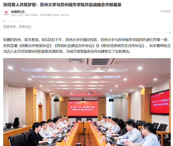 (凤凰网江苏)协同育人共筑梦想:苏州大学与苏州城市学院开启战略合作新篇章