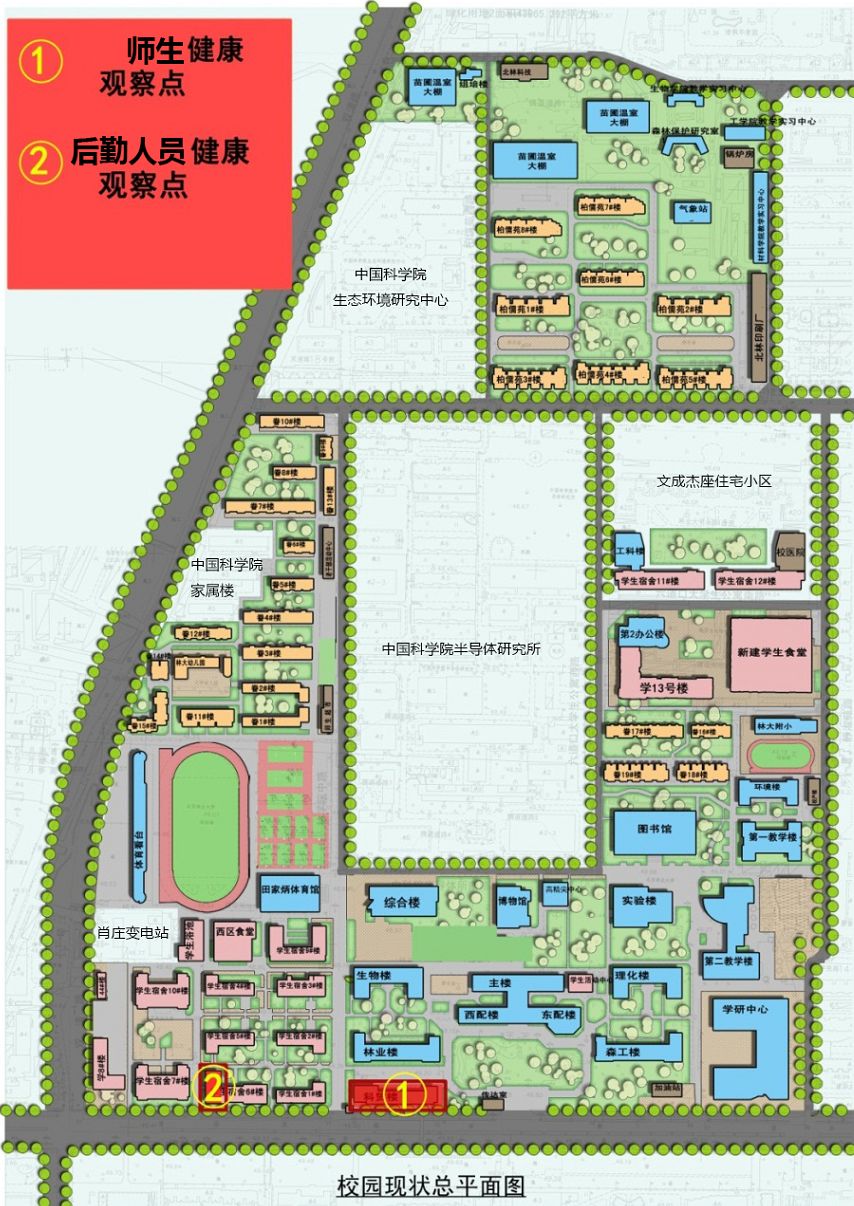 在学校党委的坚强领导下,各部门通力协作,建成隔离健康观察点并向海淀区疾病预防控制中心和海淀区社区卫生服务管理中心进行了备案。
