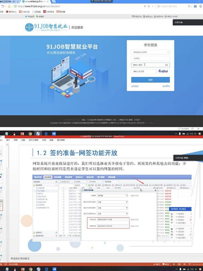 工程师高赟就签约准备、签约流程和解约流程三个方面进行网上签约系统培训,演示了在91job智慧就业平台上从单位邀约、学生应约、院系审核、学校审核、上报派遣等流程具体操作步骤。