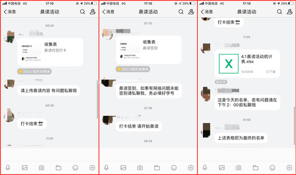 为了引导广大同学养成良好的学习习惯,学生会组织开展了晨读活动。本次晨读活动受到疫情影响采取了线上打卡的形式,吸引到160余名同学的参与。