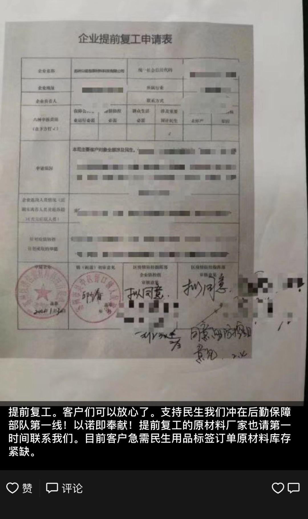 在抗击疫情的关键时期,保障民生用品和医疗物资的供应尤为重要。我院2009届日语专业校友吴尹荣,于毕业后创办了苏州以诺包装材料科技有限公司。作为以不干胶标签生产为主营业务的企业,吴尹荣自大年夜开始,便收到许多因接到政府要求“保障民生产品不断供”而复工的生产企业的电话,他们纷纷对产品标签有大量需求,吴尹荣立即向相关部门申请复工。“等待复工审批的那几天,我身兼数职。”吴尹荣说,他作为接单员、采购员、生产员、送货员,努力克服企业无员工,原材料欠缺、物流停运等困难,不断为生产前线输送公司的库存产品,只为保证疫情期间不干胶标签物资的稳定供应。2月5日,企业复工申请通过的第二天,在相关部门检查完复工条件后,吴尹荣立即开工了。“一开始员工还没有到位,我就一个人用印刷设备,上生产线。”因企业提前复工,许多如消毒水、医用酒精等医疗物资的不干胶订单也越来越多。吴尹荣告诉记者,尽管提前复工使自己的人力成本和运输成本都有所增加,但所有产品都仍以原价供应。“我们虽然不在抗击疫情的一线,但我们坚守在后勤保障工作的一线。”