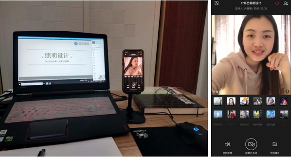 在《照明设计》的课程中,尹唐瑭老师有有一些心得体会,她给我们建议到要利用好摄像头,尽量保持与学生的沟通。得益于各种软件的方便性,在讲课的过程中老师们还是应时不时的提些问题,因为无法看到每位学生的听课状态,这样做一是确保学生能集中注意力听讲,二是还原自己在线下上课的模式,保持正常上课的良好状态。充分利用家中的一些物件进行举例。因为专业的特殊性,在讲授环境设计的课程时,可有效利用身边可以找到的东西。例如,在《照明设计》的课程中,给学生以家里的物品略做说明,也让课堂更为轻松和生活化,便于学生更好的理解所讲内容。
