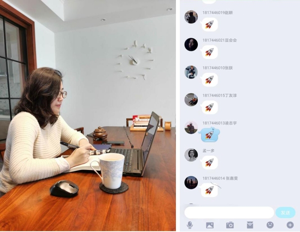 许雯老师在正式开学前,早早的就开始准备起来了线上专业人员的技术培训课程,由于担心如有突发状况该如何应对,特意和同事在线试用了平台,熟悉功能。第一天线上教学,她早早的就把学生邀请进入课堂,展开双平台运作,令人惊讶的是,学生们配合度很高,每一个对任务都认真完成,每一次交流都能提出问题。看到屏幕上不断闪烁的一行行留言,原来这样的线上教学是可以取得效果的。特殊时期的教学形式改变我们的备课方式,改变教学形式,改变互动模式,改变着我们的心态,但还是充满了欣喜和感动。