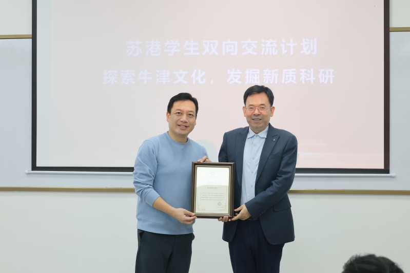 林知会长代表大湾区青年科创基金会向我校赠送感谢信。孙宇副会长对我校在行程设计、课程安排与人文关怀方面的用心付出表示感谢,期待未来双方能持续深化合作,共建青年成长共同体,携手推动苏港交流常态化、深入化。
