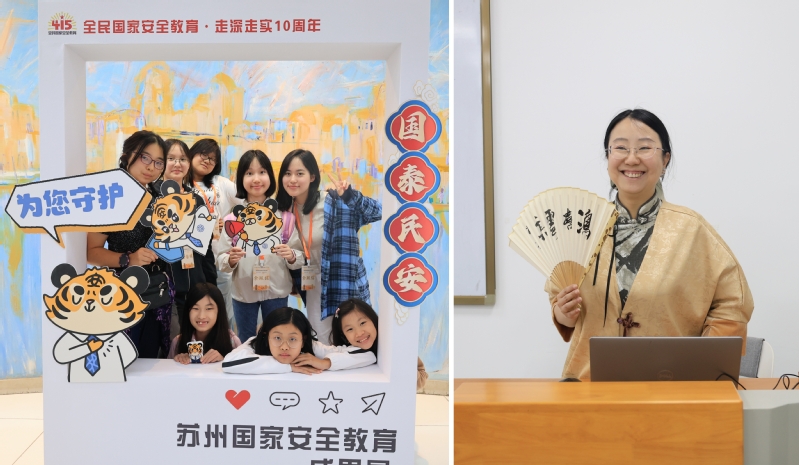 随后,香港师生们来到苏州城市学院校园与校史馆,深入了解学校的发展历程、办学特色和育人理念。在“全民国家安全教育·走深走实十周年”苏州国家安全教育成果展中,香港师生通过图片、视频和互动体验,系统学习了总体国家安全观的提出背景、核心内容与时代内涵,了解了苏州在政治、经济、科技、生态等多维安全领域的实践与成就。生动的案例与实践成果,让香港青年们对祖国安全战略与苏州社会治理的创新实践有了更为直观和深刻的理解。
