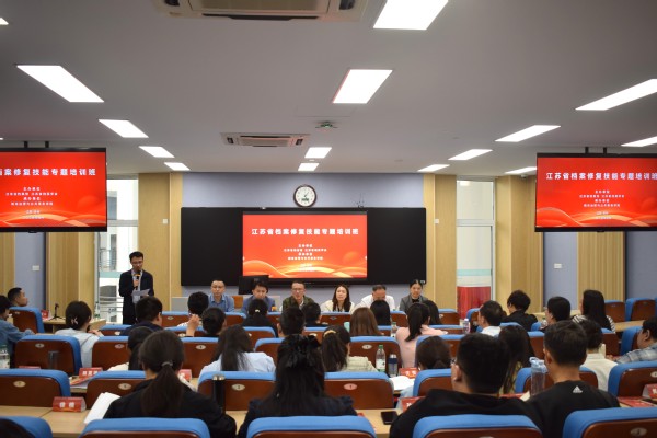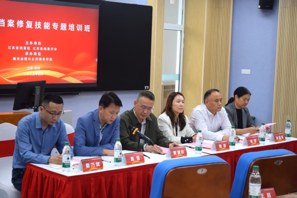 4月21日上午,由江苏省档案馆、江苏省档案学会主办,城市治理与公共事务学院承办的江苏省档案修复技能专题培训班开班仪式在3-212举行。江苏省档案馆人事处处长隋韧、技术保护处处长夏雪、江苏省档案学会秘书长杨坚、江苏省数字档案中心副主任桑乃斌,我校党委常委、副校长黄涧秋,继续教育学院院长施盛威,以及50名参训人员参加了开班仪式。仪式由城市治理与公共事务学院副院长史新广主持。