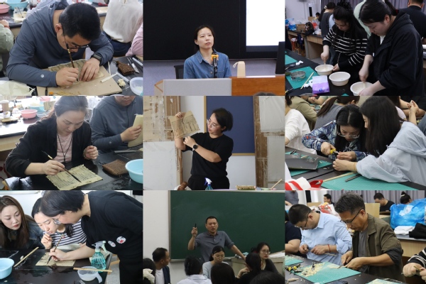 开班典礼后,为期4天的培训班拉开帷幕。培训采取“理论教学 实践操作 实地观摩”的多元化教学模式。来自苏州大学和苏州博物馆的档案修复专家为学员们讲授了档案修复工作理论知识。除专题讲座外,培训班突出实际应用,依托我校档案实验室,专家“一对一”指导演示、学员动手跟学跟练,加大实操教学的时长与力度,帮助学员初步掌握修复的主要方法和操作技巧,有效提升破损纸质档案的修复技能。此外,培训班还安排学员前往苏州博物馆进行实地观摩学习,通过近距离观摩馆藏文物,学员们得以跳出理论框架,加深感知档案修复技能的重要性。