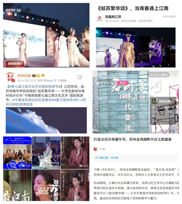 青春之姿与千年文脉共鸣,创意浪潮为江南文化注能。在4月30日启幕的第七届江南文化艺术·国际旅游节开幕式上,苏州城市学院师生以“古今对话、科艺交织”的创新表达惊艳亮相,相关活动获央视新闻、凤凰网、苏州日报等主流媒体报道,传播覆盖近79.3万人次,构筑起青春叙事与传统文化双向奔赴的生动图景。