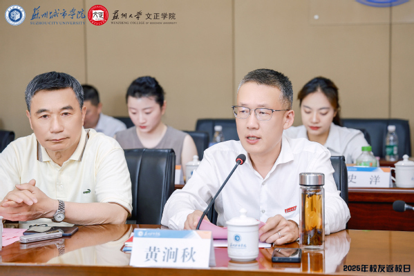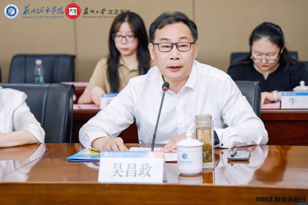 吴昌政副校长代表学校致欢迎辞,他回顾了学校从苏州大学文正学院到苏州城市学院的转型发展历程,强调校友是“母校最宝贵的财富”,并感谢校友们在人才培养、校企合作、公益捐赠等方面的持续支持,期待校友与母校携手,共同书写“名城名校”新篇章。