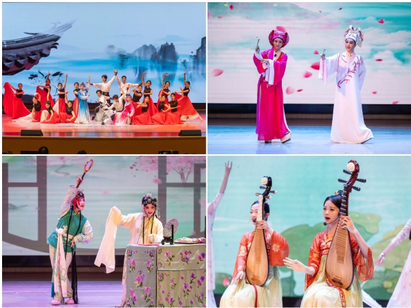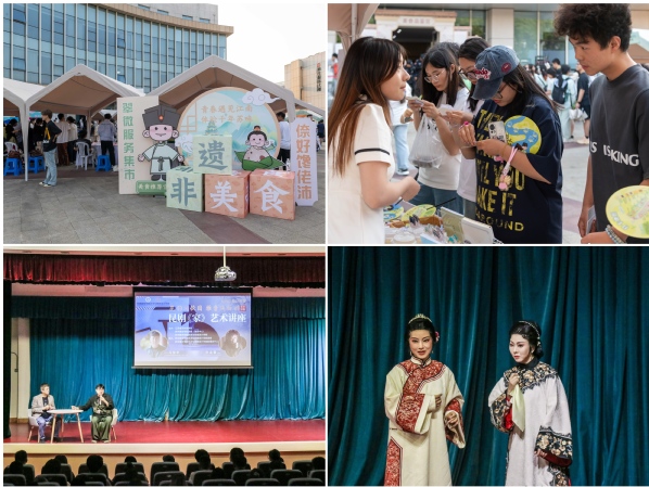 启动仪式后,“青春遇见江南・戏曲焕新”汇报演出精彩启幕。来自北京大学、南京大学、东南大学、苏州大学等10余所高校的青年学生团队齐聚一堂,带来评弹·舞蹈《苏州好风光》、粤剧《帝女花·香夭》、京剧《胭脂宝褶》、昆曲《牡丹亭·游园惊梦》、昆歌《江梅引·忆江梅》、舞蹈《象王行》等多元戏曲艺术展演,传统与青春活力在舞台上交相辉映。当日,学校在数字化中心前广场及大厅精心设置“非遗美食市集·翠微服务集市”,同步在图书馆报告厅举办“昆韵润校园 雅音焕新彩”——昆剧《家》艺术讲座,由该剧导演马俊丰、文艺评论家孙孟晋老师携主演团队,与师生共话戏曲艺术的当代传承。