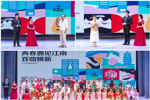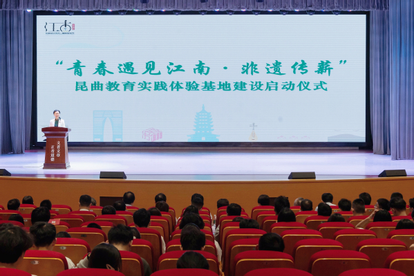 作为第七届江南文化艺术・国际旅游节的重要子活动,“青春遇见江南”大学生江南文化季品牌活动持续升温。5月26日下午,“青春遇见江南·非遗传薪”昆曲教育实践体验基地建设启动仪式暨“青春遇见江南·戏曲焕新”大学生戏曲展演汇报演出,在苏州城市学院多功能厅隆重举行。省委第三巡视组副组长王旭,苏州大学党委常委、副校长查佐明,苏州市委教育工委书记、市教育局局长兼市政府教育督导室主任周志芳,苏州城市学院党委书记周玉玲,苏州城市学院党委副书记、校长赵志宏,苏州城市学院党委常委、副校长高雷,苏州城市学院党委常委、副校长孙德芬等领导出席活动。启动仪式由校党委常委、纪委书记、监察专员李萍主持。