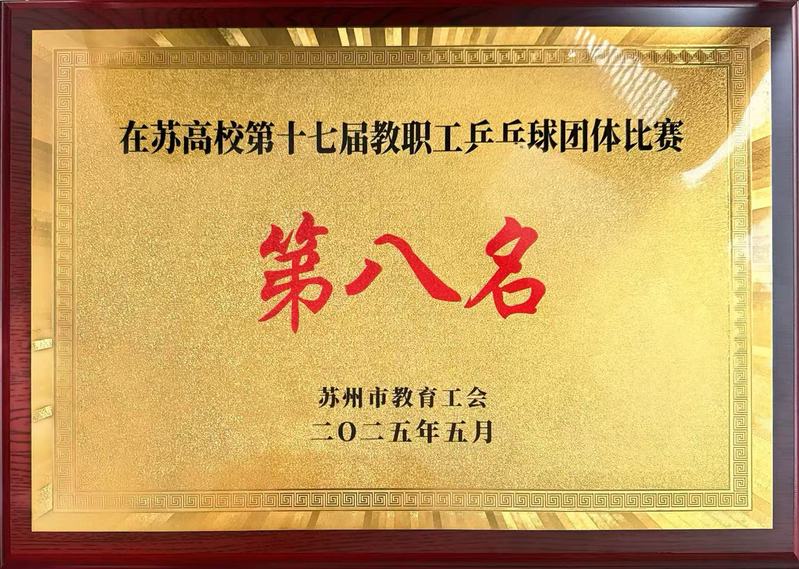 为广泛开展全民健身运动,增强教职工身心素质,丰富教职工业余文化生活,5月26日,2025年在苏高校第十七届教职工乒乓球团体赛在苏州市职业大学体育馆举办。我校参赛队员以坚韧拼搏的精神,荣获团体赛前八名,为学校争得荣誉。