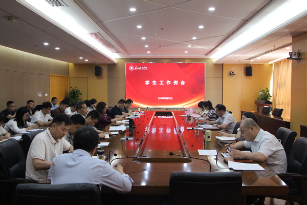 5月30日上午,我校在综合楼三楼大会议室召开学生工作例会。校党委常委、副校长吴昌政,团委(美育中心)、招生就业处、党委学生工作部(学生工作处)等职能部门负责人及科级干部,各二级学院党委书记、分管学生工作副书记、青年干事、团学办主任、副主任参加会议。会议由吴昌政主持。