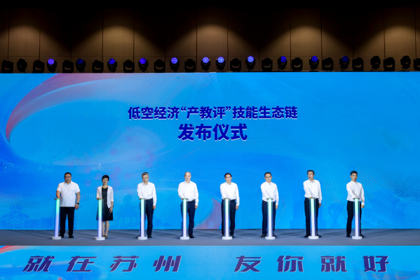本次推进会以“就在苏州 友你就好”为主题,为广大高校院所、在苏企业、行业协会、服务机构、高校毕业生等搭建交流平台。现场,苏州低空经济“产教评”技能生态链正式发布,我校党委常委、副校长吴昌政受邀上台参加发布仪式,该技能生态链将企业、院校、培训机构等各方资源整合起来,通过校企合作、产教融合等方式,有针对性地加速高技能人才培育,助力打造未来“空中之城”。