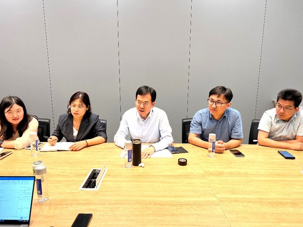 调研首站,高雷一行来到国内领先的测试设备供应商华兴源创。华兴源创人事部门负责人朱艳、技术部门负责人王虎先后介绍了华兴源创在半导体检测、显示面板检测等领域的前沿技术成果,并由工作人员现场演示了高端检测设备的智能化应用场景。高雷副校长对华兴源创的创新能力表示高度赞赏,并介绍了苏州城市学院在应用型学科建设、产业适配人才培养方面的特色优势。