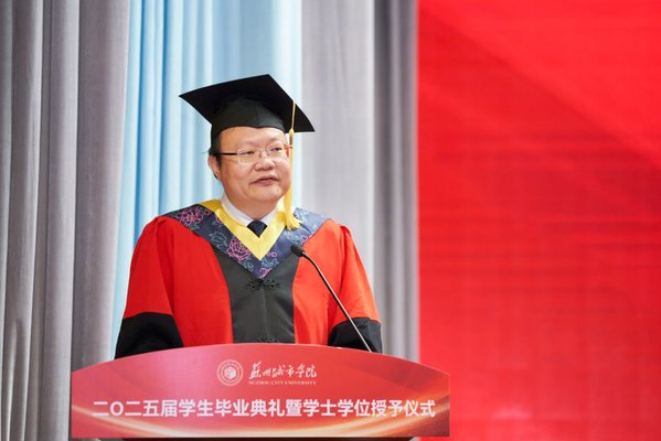 校长赵志宏致辞,作为新时代青年,生逢中华民族发展最好时期,在大家即将踏上新征途,开启人生崭新篇章之际,对毕业生们提出三点殷切期望:志如磐石,永葆信仰之光,在时代浪潮中锚定精神坐标;勇立潮头,紧握创新之桨,以开拓思维破解发展难题;砥砺笃行,扬起奋进之帆,用实干精神书写人生答卷。他愿同学们始终践行“文者文章、正者道德”的校训精神,在时代长卷中镌刻属于自己的辉煌印记。