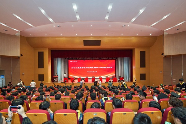 盛夏时节,又闻骊歌。6月15日,我校于综合楼多功能厅隆重举行2025届学生毕业典礼暨学士学位授予仪式,仪式分四场依次进行,共同见证3200余名毕业生圆满完成学业,在人生新起点上扬帆起航。校领导、各学院及相关职能部门负责人、全体毕业班班主任、毕业生家长代表齐聚一堂,共襄这场青春盛会。