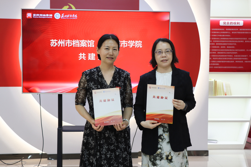 在共建仪式中,贾莉、孙德芬分别代表苏州市档案馆和我校签署共建协议。未来,双方将以档案资源为纽带,在人才培养、专业建设和师资科研等方面深化合作,共同打造馆校“档案文化育人共同体”,为苏州档案事业培养更多高质量应用型人才。