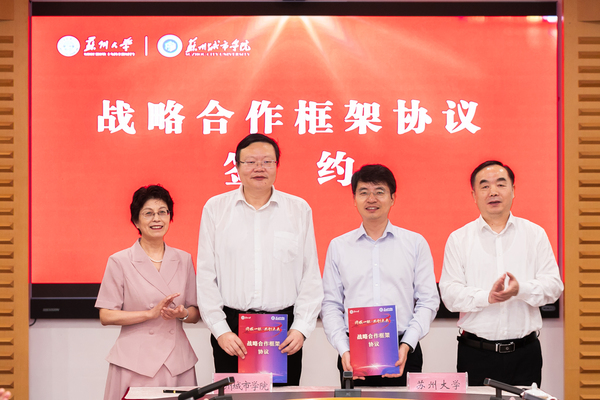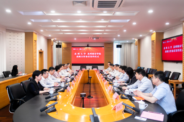 为深入贯彻江苏省委、省政府关于加快推进现代化教育强省建设的战略部署,服务苏州打造全球领先的“智造之城”和社会主义文化强市目标,6月23日下午,苏州大学与苏州城市学院在苏大天赐庄校区红楼217会议室举行战略合作协议签订仪式。双方以“同承一脉,共创未来”为主题,开启合作新篇章。苏州大学党委书记张晓宏、校长张桥,苏州城市学院党委书记周玉玲、校长赵志宏等双方校领导班子成员及相关职能部门负责人共同出席本次签订仪式。仪式由苏州大学党委常委、副校长洪晔主持。