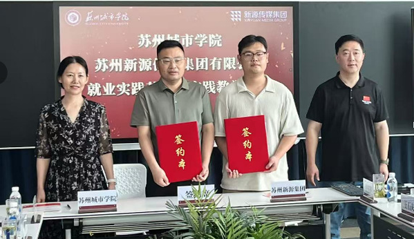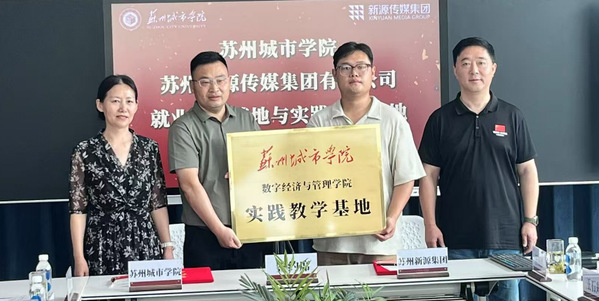 为深入贯彻产教融合发展理念,构建教育与企业协同育人新生态,6月24日,苏州城市学院数字经济与管理学院与苏州新源传媒集团有限公司举行实践教学基地签约仪式。此次仪式在新源传媒集团3楼会议室成功举办,标志着双方在数字经济领域正式开启深度合作,共同探索“教学 实践”融合新模式,为培养高素质应用型人才奠定坚实基础。