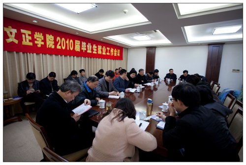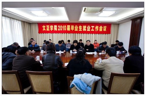 2010年3月24日上午文正学院2010届毕业生就业工作会议在扬州大学专家楼会议室举行。学院各系副主任及毕业班班主任36人参加了会议,会议由文正学院党委书记宋锦汶主持。会上首先由学院创就业指导中心王淼老师全面分析2009年度毕业生就业状况及介绍2010届毕业生就业指导的相关工作。紧接着由三位老师依次进行了交流发言,学院教务处处长施盛威及实验实习中心主任王宗善老师分别介绍了2010届毕业生的教学和实习等工作的安排。与会的毕业班班主任对开展就业指导工作的设想及在工作中的问题、难点进行热烈深入地探讨和交流。
