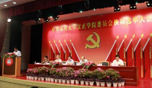 杜明同志向大会作了《中共苏州大学文正学院委员会党费收缴使用情况报告》、赵小和同志向大会宣读了《中共苏州大学文正学院委员会换届选举办法》。大会对党委工作报告、党费收缴使用情况报告、换届选举办法进行审议并鼓掌通过。大会还通过了总监票人、监票人名单。