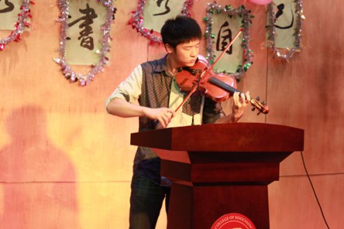 伴随着文娱部姚冬屹一曲优雅的小提琴演奏,比赛拉开了序幕。首先由主持人介绍比赛的流程与本次活动开展的目的,接着通过屏幕观赏选手自制视频和ppt,各位选手通过录制的视频表述了他们对读书的感悟,对作家的个人认知以及对书籍的喜爱之情。比赛间隙,还穿插着趣味猜书名的小游戏,以调动在场同学们的参与热情,而优雅古朴的茶道表演更是将读书风气融于中华传统文化内涵之中,使整场比赛充满了书香的气息。