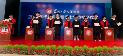 经院第一届学士学位评定委员会第二次会议讨论通过,首批1756名学生获得由我院独立颁发的学士学位证书。2008级金融学专业毕业生任婷、2008级机械工程及自动化专业毕业生张卫、2008级英语专业毕业生张心悦、2008级档案学专业毕业生钱啸凤作为优秀毕业生代表上台发言。他们都在发言中表示,文正学院给了他们一生都享用不尽的智慧和力量。他们与参加仪式的毕业生一起用毕业誓词表达了对未来的无限憧憬与奋斗决心。