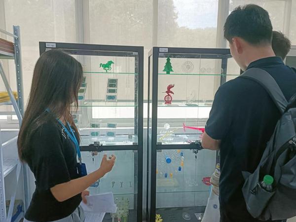“人工智能赋能的自动化微流控系统”“高精度、实时响应的智能交通基础设施健康评估系统”等前沿科研成果在此集中亮相。实验室里,精密的仪器设备有序运转,学院的讲解员为校友们详细讲解项目的技术原理与应用前景。