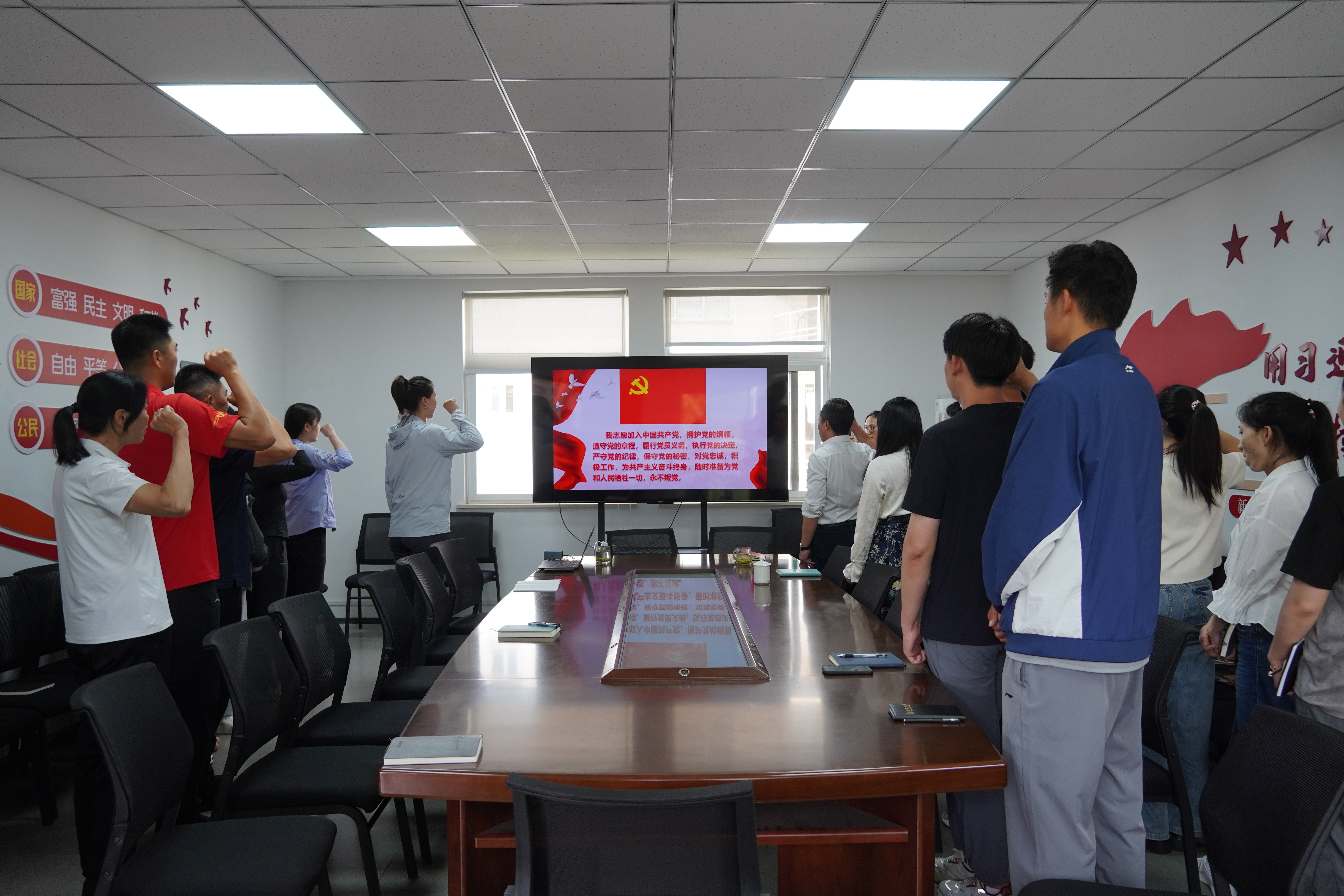 最后,许安琪佩戴党员徽章,带领学部教职工党员庄严重温入党誓词。通过此次活动,基础教学部将击剑运动“快、准、变”的智慧凝练为党建育人方法论,以体育精神强化师德涵养,以冠军品质激发创新活力,推动基层党建与教育教学深度融合,为培养具有战略思维和坚韧品格的新时代人才注入红色动能。