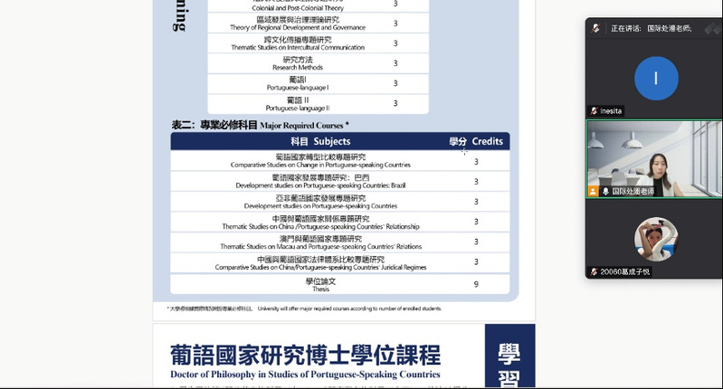 5月21日下午,我校国(境)外硕士升学项目说明会在线上召开。国际合作交流处合作交流科副科长潘涵分别就澳门城市大学葡语国家研究院硕士升学项目、新西兰梅西大学硕士直通车项目、及澳大利亚悉尼科技大学硕士升学项目背景及概况作详细介绍,并就学生提问作具体解答。