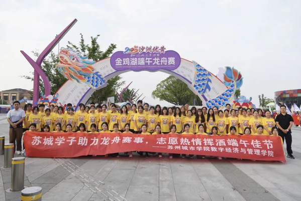 苏州城市学院数字经济与管理学院积极服务地方发展,选派73名优秀青年志愿者全程参与赛事保障工作。志愿者们化身“龙舟护航员”参与赛事开幕式支援工作,协助主办方进行现场秩序维护和物资调配等志愿服务工作。他们用汗水诠释责任、以服务传递温暖,为金鸡湖端午龙舟赛的顺利开展提供有力保证,赢得主办方与参赛队伍一致好评。