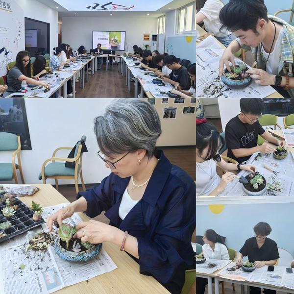 本次活动采用“认知-体验-反思”的递进式设计,包含三个环节:在理论讲解环节,李凌云通过生动的案例系统介绍了园艺疗法的心理疗愈机制;实践操作环节中,参与者通过多肉植物的选材、配色和造型设计,在创作中体验专注的“心流”状态;最后的分享环节创新采用“植物代言”的表达方式,让每位参与者以自己创作的多肉盆栽为媒介,分享内心感悟。