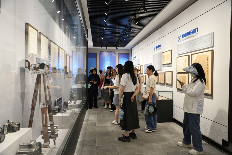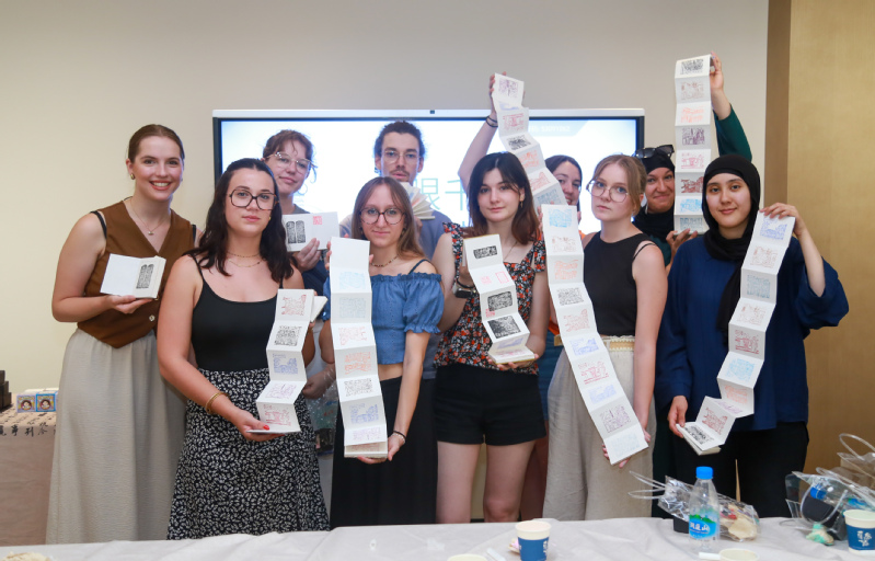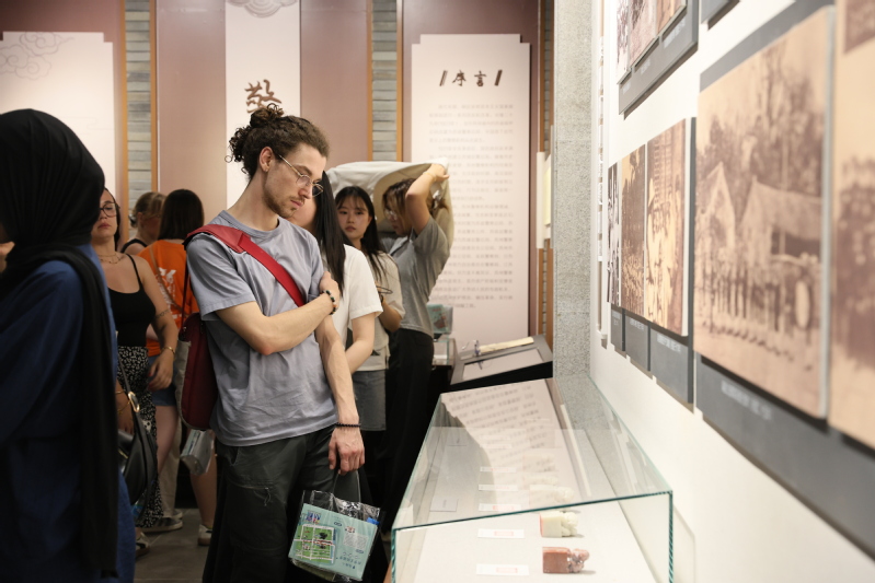 此次活动特别设计了集章打卡环节,每位参与者领取了一本精美的游学手册,内含各点位的历史知识及趣味问答,还可扫码观看游学vr,感受在“游”中“学”,在“学”中“游”的美好体验。在况公祠、警察博物馆和按察使署旧址,留学生们纷纷收集游学特色印章,精美的印章图案受到同学们的一致认可。另外,在江苏按察使署内,新开设的篆刻艺术展吸引了他们的目光,留学生们尽情欣赏中式篆刻艺术美学,进一步加深对中华优秀传统文化的认知。