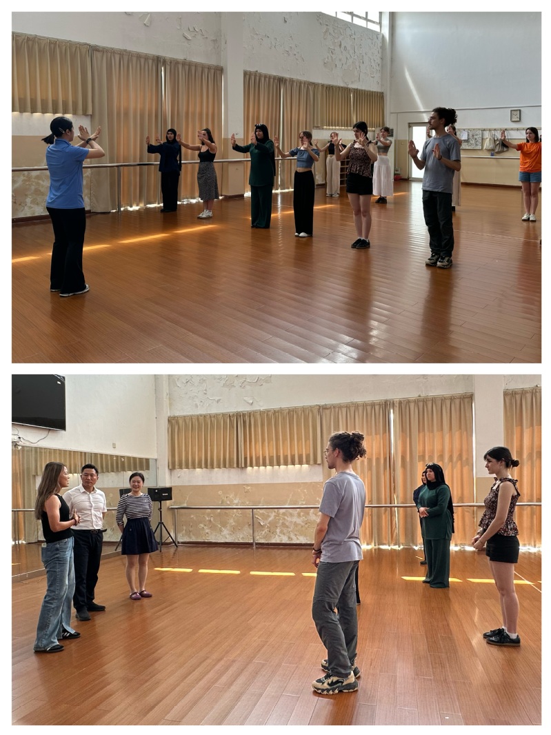 留学生们首先来到我校,跟随基础教学部马思恩老师共同体验中华武术,通过学习中华传统武术的入门基石——五步拳,感受中国功夫的力与美、刚与柔,理解武术背后所承载的礼仪、专注、坚韧、和谐等中华优秀传统文化精髓。体验过程中,曾效力于法甲女足的中国著名女子足球运动员李梦雯也来到活动现场,与留学生们亲切交流。