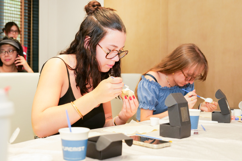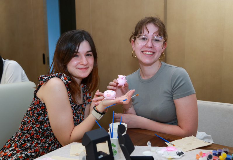 苏州泥塑是苏州传统美术,国家级非物质文化遗产之一。它分为大型神佛塑像和虎丘泥人两类,神佛塑像细腻雅致,虎丘泥人写实,多以戏文为主题,融合了多种艺术与学科知识,极具艺术、历史文化研究价值。在江苏按察使署旧址的非遗工坊内,留学生们参与了苏州泥塑非遗体验,其作为沧浪街道非遗孵化项目积极申报第七批姑苏区非物质文化遗产代表性项目。高级工艺美术师关惠现场示范,指导大家调制颜料、彩绘、封釉。一位法国留学生兴奋地说:“泥塑的触感很特别,每个人都是十二生肖盲盒,太有趣了!”另一位留学生则对泥塑背后的文化故事着迷:“原来《红楼梦》里提到的虎丘泥人就是苏州泥塑,这种传统工艺既有艺术性,又充满生活气息。”