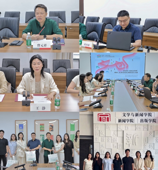 6月12日-6月13日,苏州城市学院城市文化与传播学院广告专业建设负责人王静教授带队前往四川大学等多地开展专题研讨、调研,并进行2025“idea 苏州”青年・大学生文化创意设计大赛首场宣讲活动。学院综合办公室主任刘昱希,文化产业管理李梦雅老师,综合办公室刘雅楠老师,22书院基地班班长汤景程,23广告班班长周方圆,23广告班学委薛晶晶一同参与调研与宣讲。