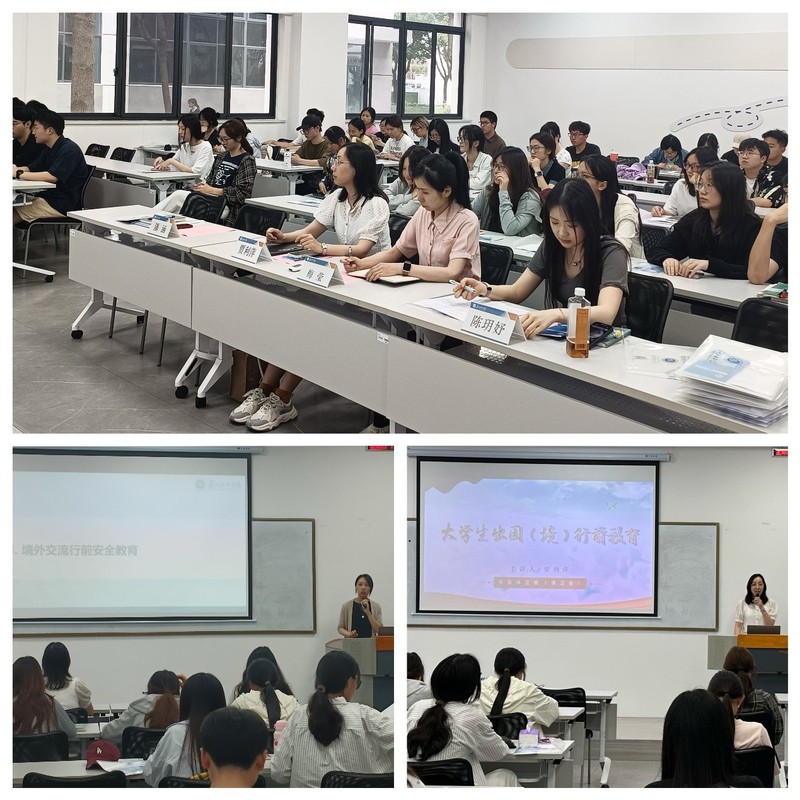 贾利萍就学生赴国(境)外交流、学习、生活作行前安全教育,指导学生在外期间应牢固树立整体安全意识,切实保护个人人身及财物安全和合法权益,维护国家安全,并根据本次赴外交流学习学生目的国家和地区就行前、途中、事后各阶段注意事项和个人及国家安全重点作逐一提示。