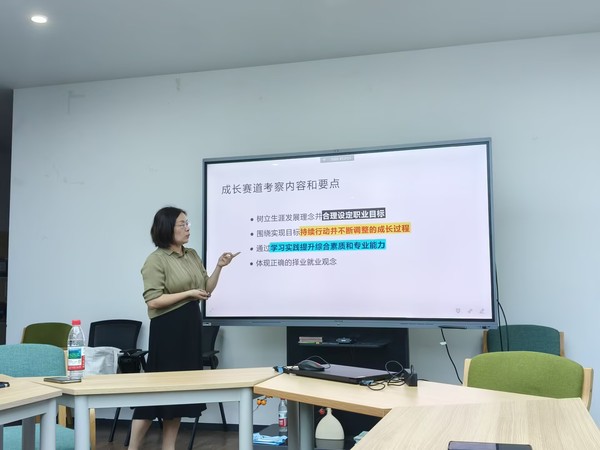 讲座中,叶蓓老师从比赛环节、评审标准、备赛要点、呈现逻辑等多个维度展开了详细阐述,强调参赛学生需清晰设定职业目标,展示围绕目标所采取的持续行动与动态调整过程,同时注重提升综合素质和专业能力,体现正确的择业就业观念。叶蓓老师鼓励同学们在规划中将个人理想与国家需要、经济社会发展充分结合。