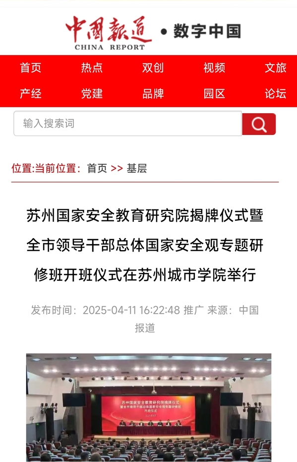 当天,全市领导干部总体国家安全观专题研修班开班;苏州全民国家安全教育10年成果展开展。