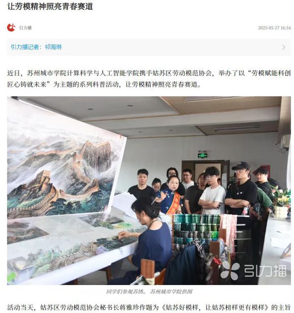 近日,苏州城市学院计算科学与人工智能学院携手姑苏区劳动模范协会,举办了以“劳模赋能科创 匠心铸就未来”为主题的系列科普活动,让劳模精神照亮青春赛道。