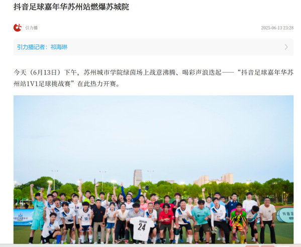 今天(6月13日)下午,苏州城市学院绿茵场上战意沸腾、喝彩声浪迭起——“抖音足球嘉年华苏州站1v1足球挑战赛”在此热力开赛。