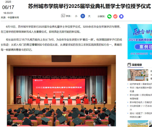 6月15日,苏州城市学院举行2025届毕业典礼暨学士学位授予仪式,3200余名毕业生怀揣学识与理想,在江南学府的翠微湖畔完成人生重要仪式,即将奔赴无限可能的新征程。