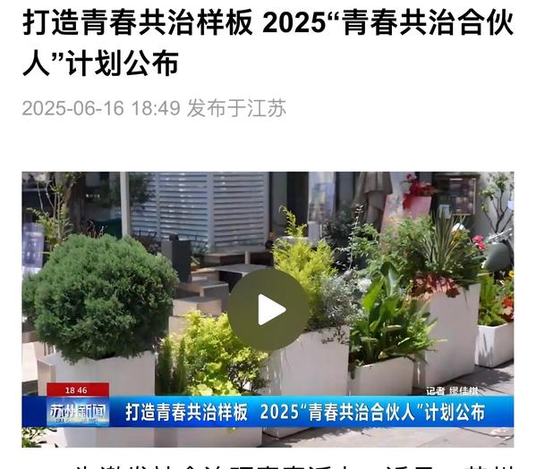 为激发社会治理青春活力,近日,苏州团市委公布了2025年“青春共治合伙人”计划名单,首批共有10个项目入选。