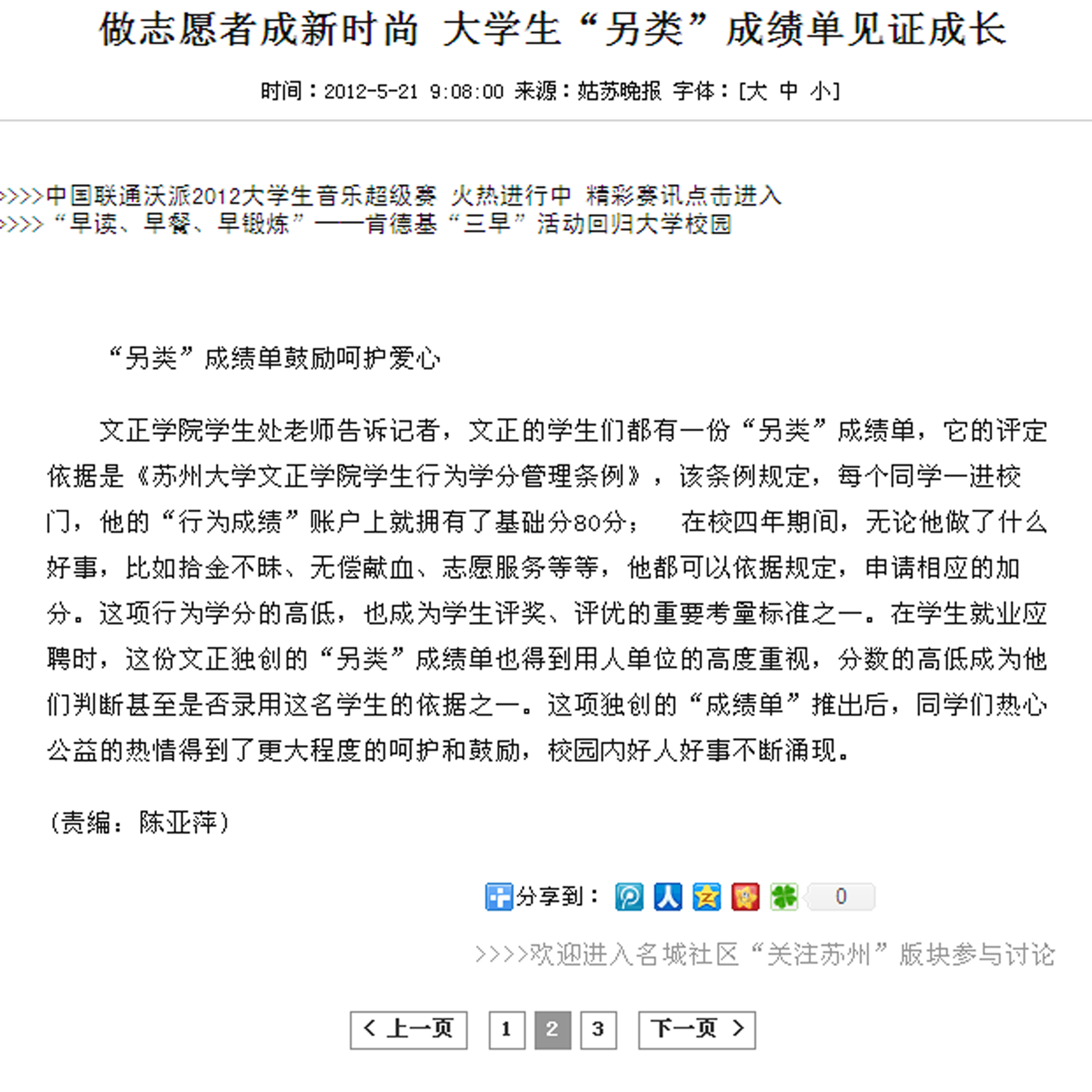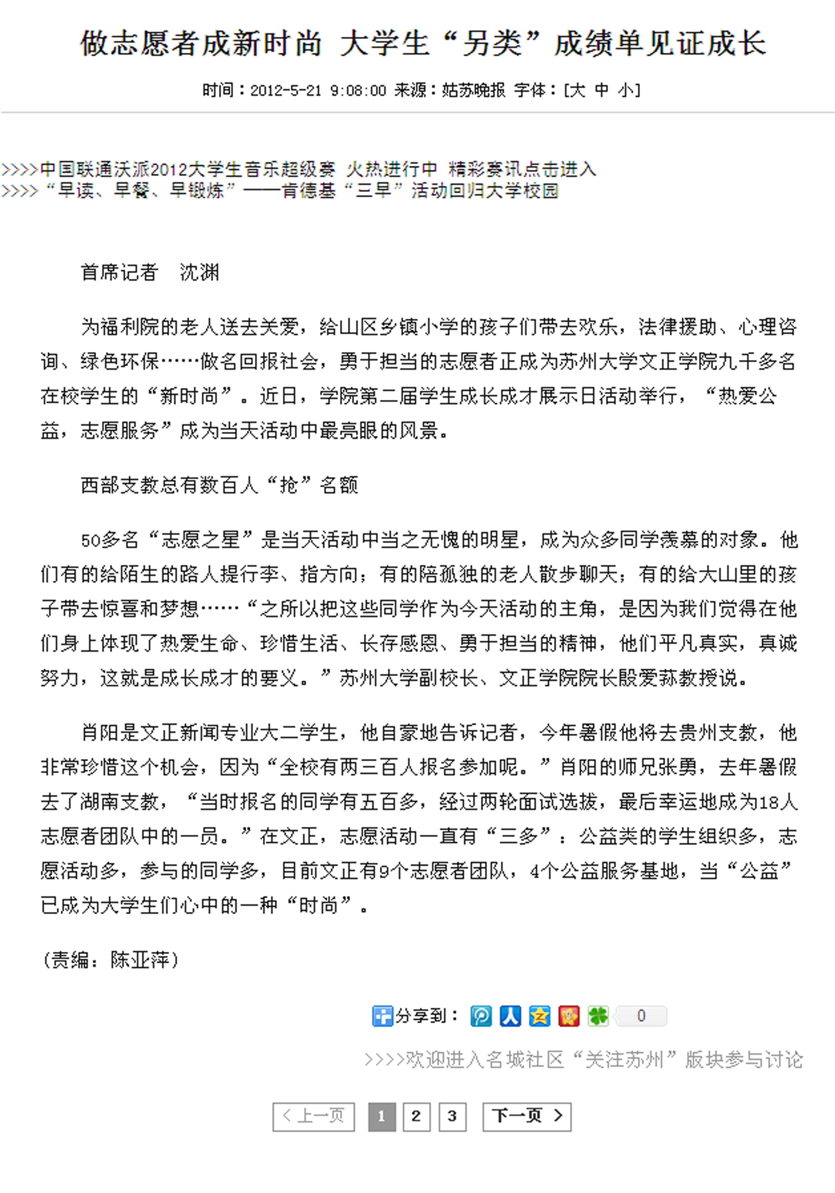 (姑苏晚报)做志愿者成新时尚 大学生另类成绩单见证成长-火狐体育