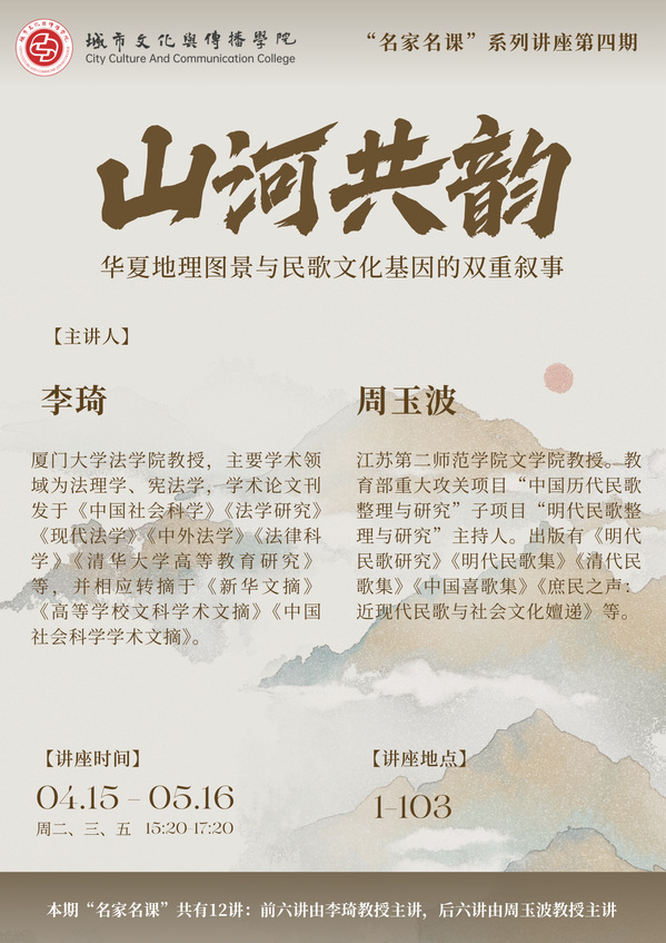 城市文化与传播学院“名家名课”系列讲座第四期:《山河共韵——华夏地理图景与民歌文化基因的双重叙事》-火狐体育