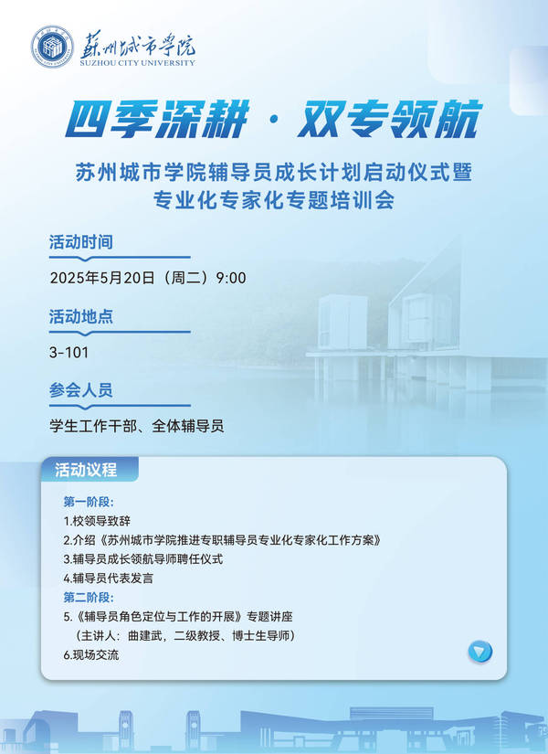 “四季深耕·双专领航”——苏州城市学院辅导员成长计划启动仪式暨专业化专家化专题培训会-火狐体育