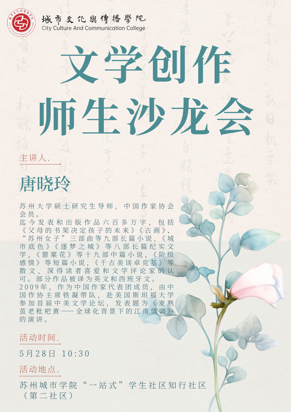 城市文化与传播学院“文学创作师生沙龙会”活动海报-火狐体育