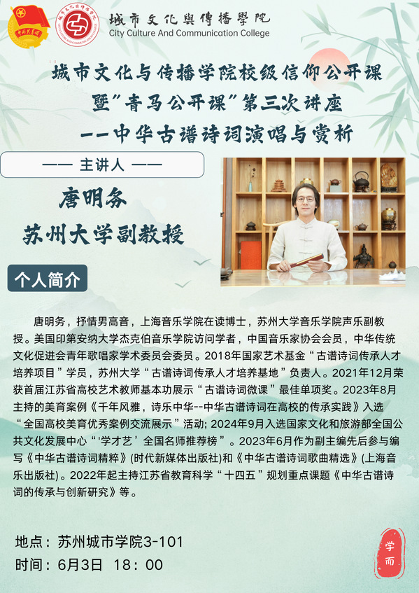 城市文化与传播学院校级信仰公开课暨“青马公开课”第三次讲座——中华古谱诗词演唱与赏析-火狐体育